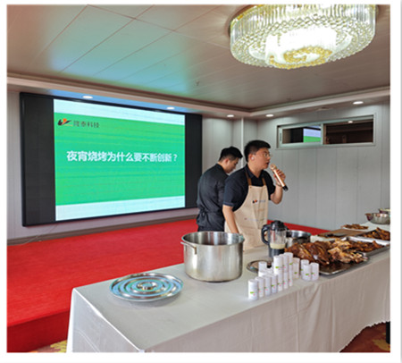 公司應(yīng)用技術(shù)工程師現(xiàn)場(chǎng)制作了鹵味食品以及燒烤制品,供前來參會(huì)交流精英們品嘗、點(diǎn)評(píng)。